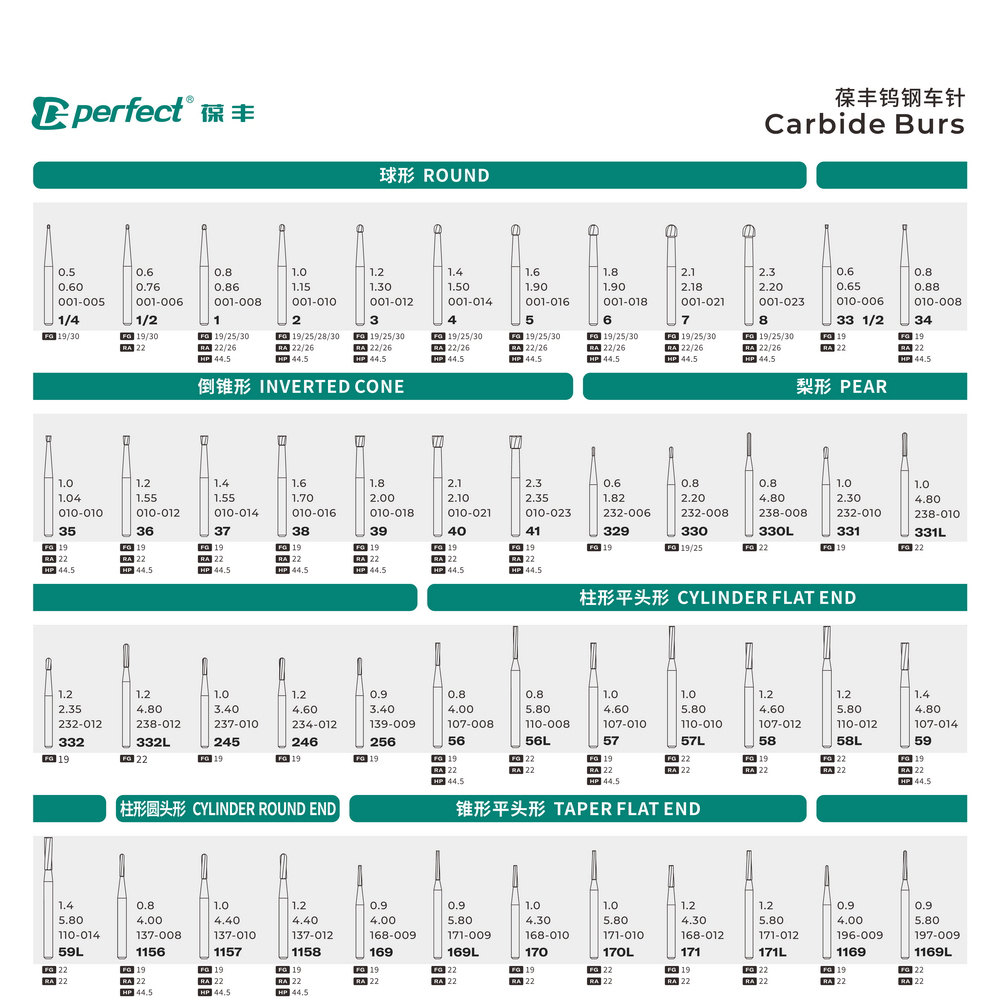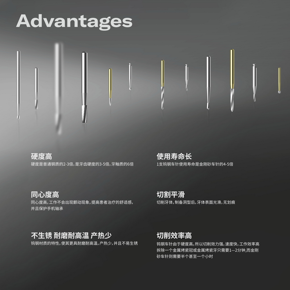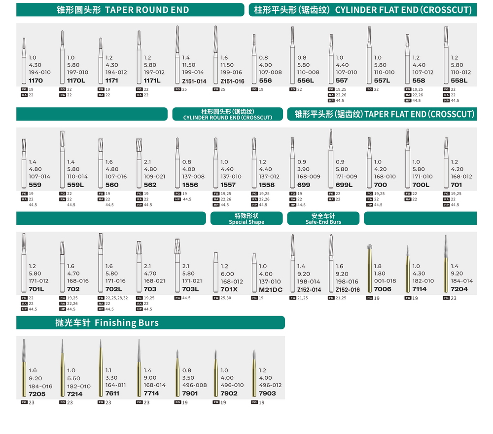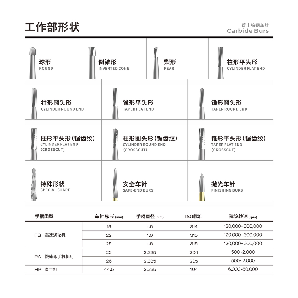 建議轉(zhuǎn)速:FG高速 RA低速 HP低速直車針